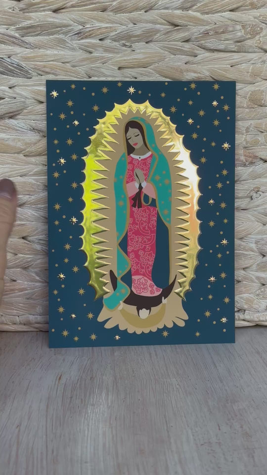 5x7 Custom Catholic illustration and hand drawn prayer, gold foil, 18pt thick postcard, soft touch coating, frameable.