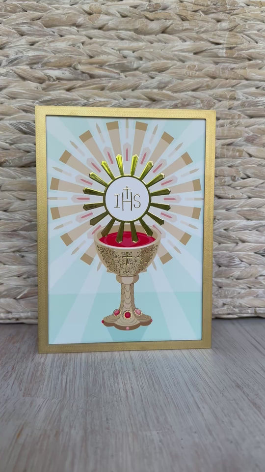Blessed Sacrament illustration light blue-green in box frame